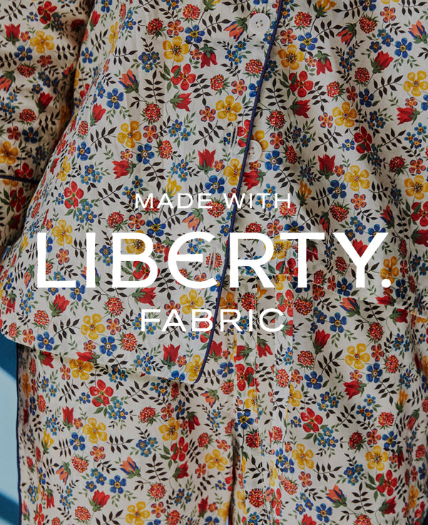 Many of our Liberty styles feature their Tawna Lawn cotton. Printed in Italy, Liberty’s Tana Lawn fabric is remarkably fluid (comparable to silk) while also washable and ready for daily wear.